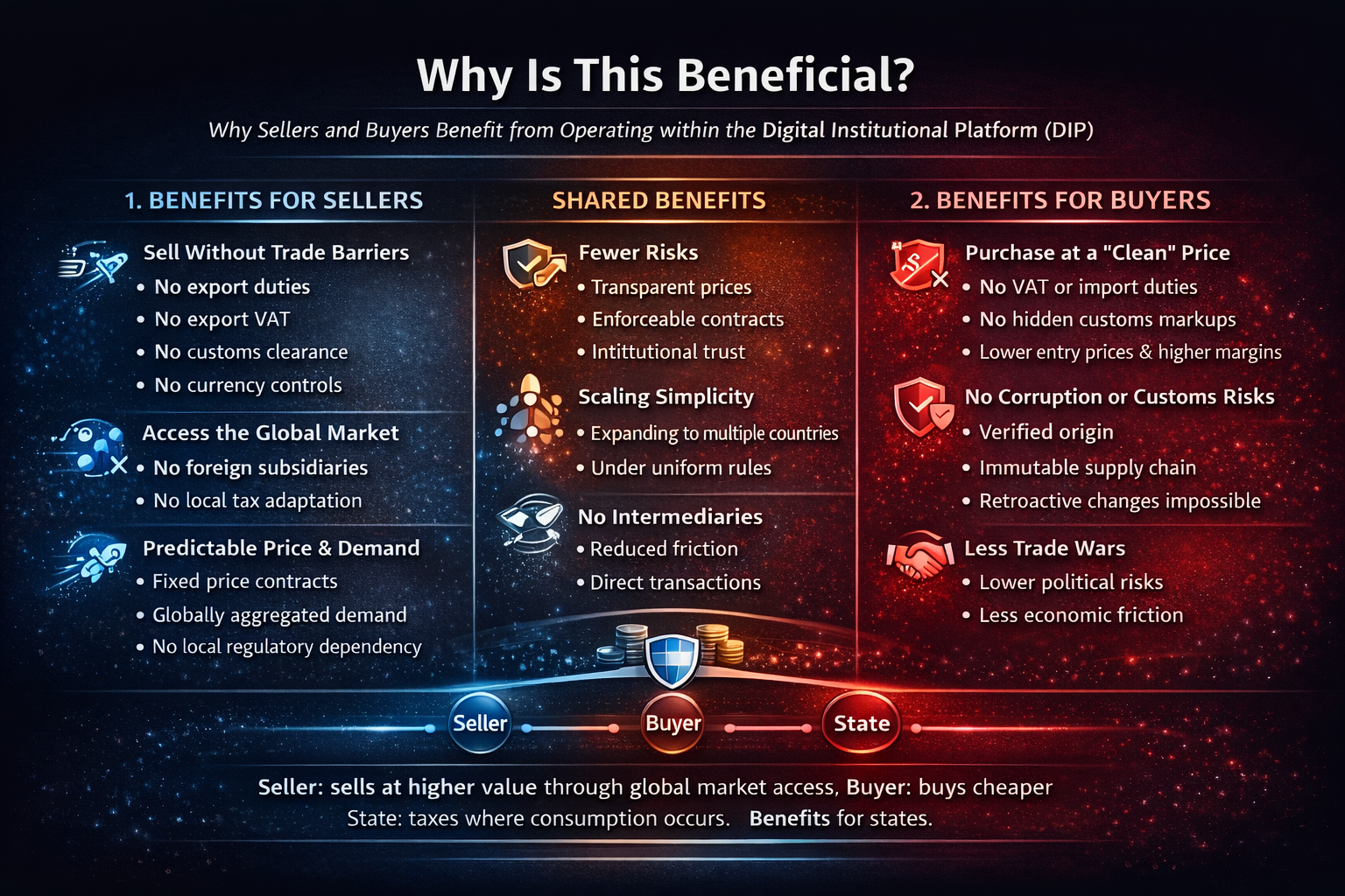 Trade within the Digital Institutional Platform removes incentives for conflict, as value is created jointly and taxation arises only where national consumption occurs.